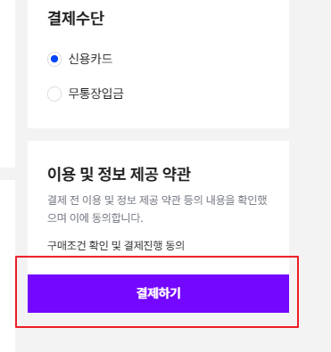 ▲원하는 방법으로 결제 카드결제 진행